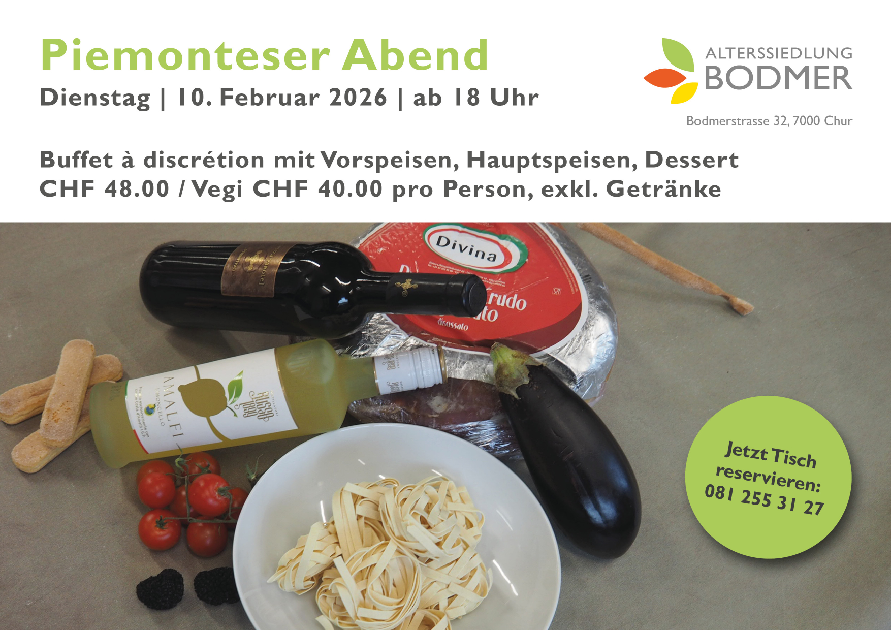 Am Dienstag, 10. Februar 2026 ab 18 Uhr laden wir zu einem kulinarischen Ausflug ins Piemont ein!